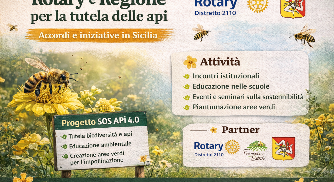 Il progetto SOS API 4.0 continua ad assumere una veste sempre più istituzionale e concreta nel territorio siciliano. Nel corso del 2025, Rotary Distretto 2110 e la Regione Siciliana hanno formalizzato un accordo multilaterale per promuovere azioni volte alla tutela degli impollinatori e alla sensibilizzazione delle comunità locali. L’accordo definisce